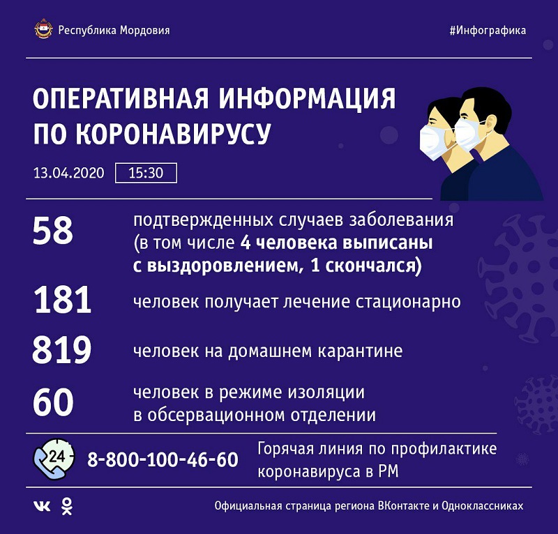 В республике 13 апреля зарегистрировано 16 новых случаев заболевания коронавирусом. Таким образом, общее число подтвержденных случаев составляет 58. Один из больных скончался в Республиканской инфекционной больнице. Мужчина в возрасте 63 лет поступил в лечебное учреждение с диагнозом внебольничная пневмония. Конкретной же причиной смерти явилась тромбоэмболия легочной артерии. При этом пациент также страдал и другими заболеваниями, включая сахарный диабет и гипертоническую болезнь. Подтверждение положительного результата теста на коронавирус пришло уже после его смерти.