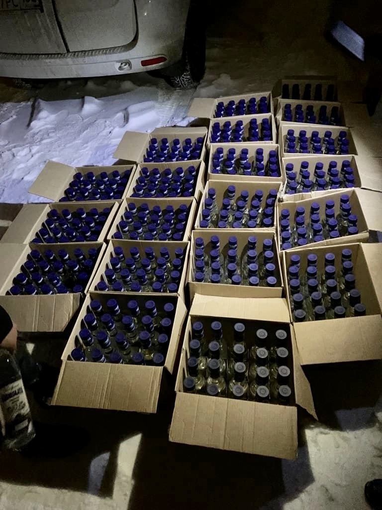 В ходе осмотра в салоне транспортного средства сотрудники полиции обнаружили 600 бутылок со спиртосодержащей жидкостью, имеющие подозрительные акцизные марки. Плюс к этому, спиртное перевозилось без всяких сопроводительных.