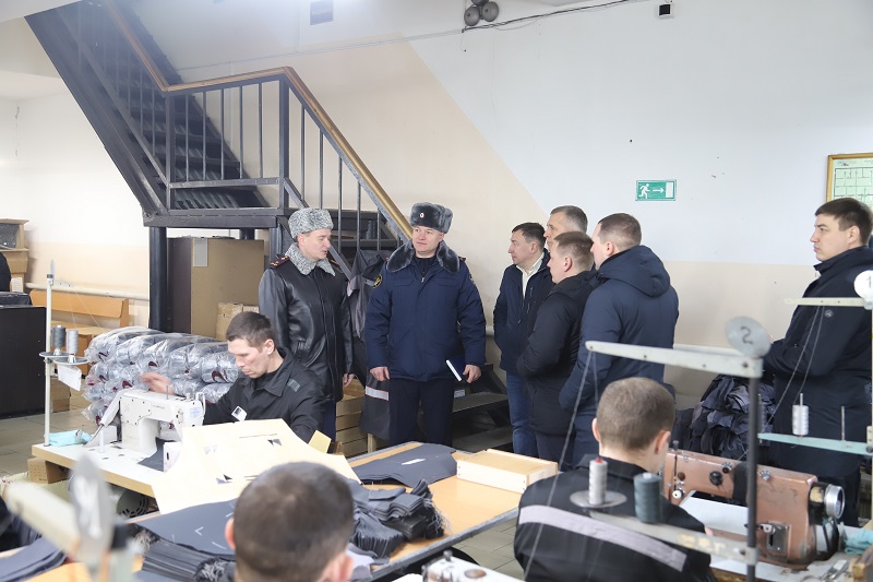В колонии №5 гости посетили цеха по изготовлению швейной продукции, корпусной мебели, окон и дверей ПВХ.