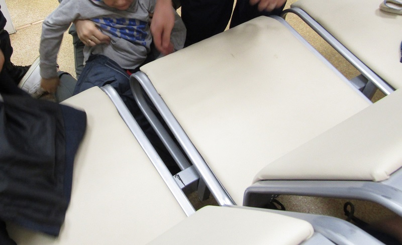15 июня в Саранске в здании Cоциального фонда на улице Ботевградской маленький посетитель угодил в ловушку - нога ребенка застряла в скамье между сиденьями.