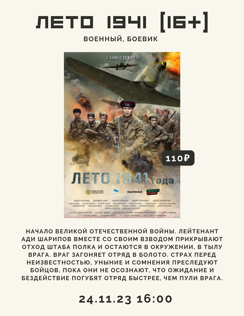 24 ноября 16:00 - «Лето 1941» (16+) - стоимость билета 110 рублей