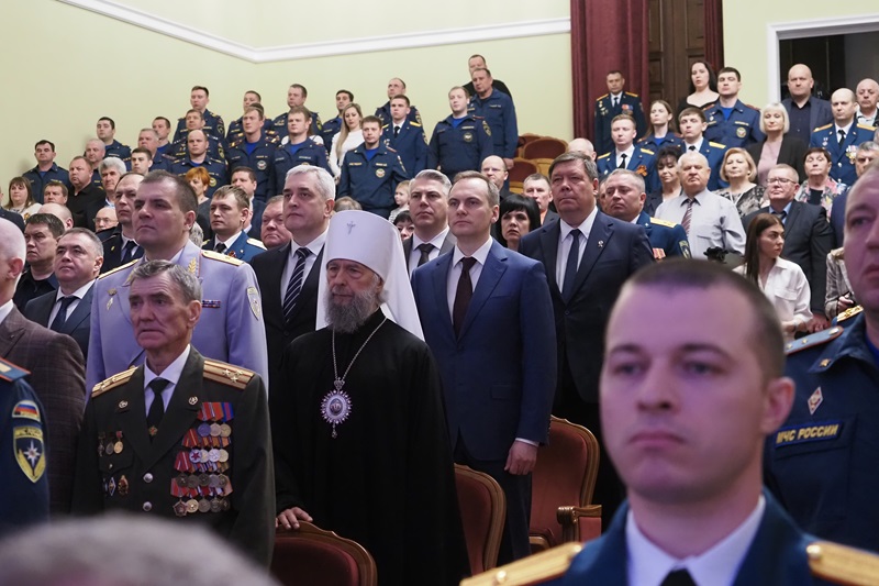 Поздравительные слова участникам торжественного мероприятия в видеообращении сказал министр РФ по делам гражданской обороны, чрезвычайным ситуациям и ликвидации последствий стихийных бедствий Александр Куренков.