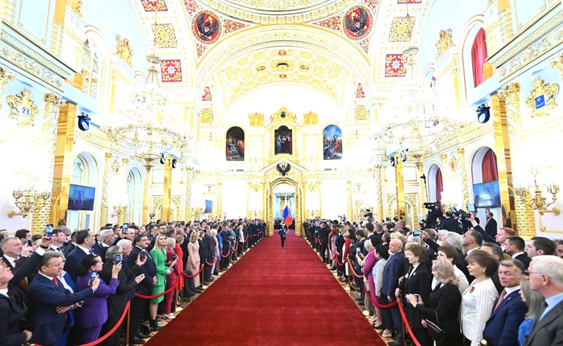 Глава государства произнес присягу, текст которой закреплен в Конституции РФ, а затем обратился к гостям церемонии и всем жителям страны с речью. Владимир Путин отметил, что в ходе прошедших в марте президентских выборов россияне подтвердили правильность курса страны.