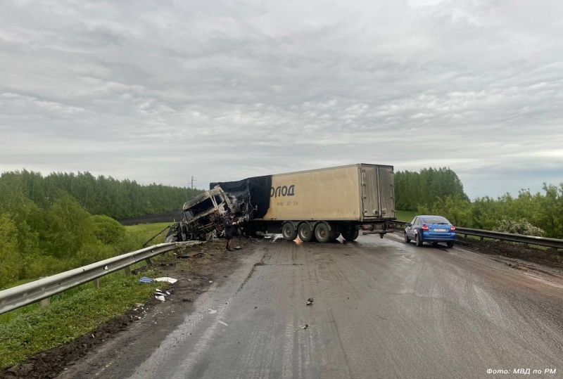 По информации Госавтоинспекции республики, 18 мая в 17 часов 32 минуты на автодороге «Саранск - Сурское - Ульяновск» в Чамзинском районе 63-летний водитель грузовика «МАЗ» с полуприцепом, по предварительным данным, в нарушение правил выехал на встречную полосу движения и совершил столкновение с автомашиной «Луидор» под управлением 34-летнего водителя. В результате ДТП произошло возгорание транспортных средств.