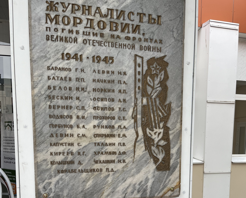 На доске, прикрепленной к фасаду здания Дома печати, увековечены имена 23 журналистов, работавших в мордовских СМИ.