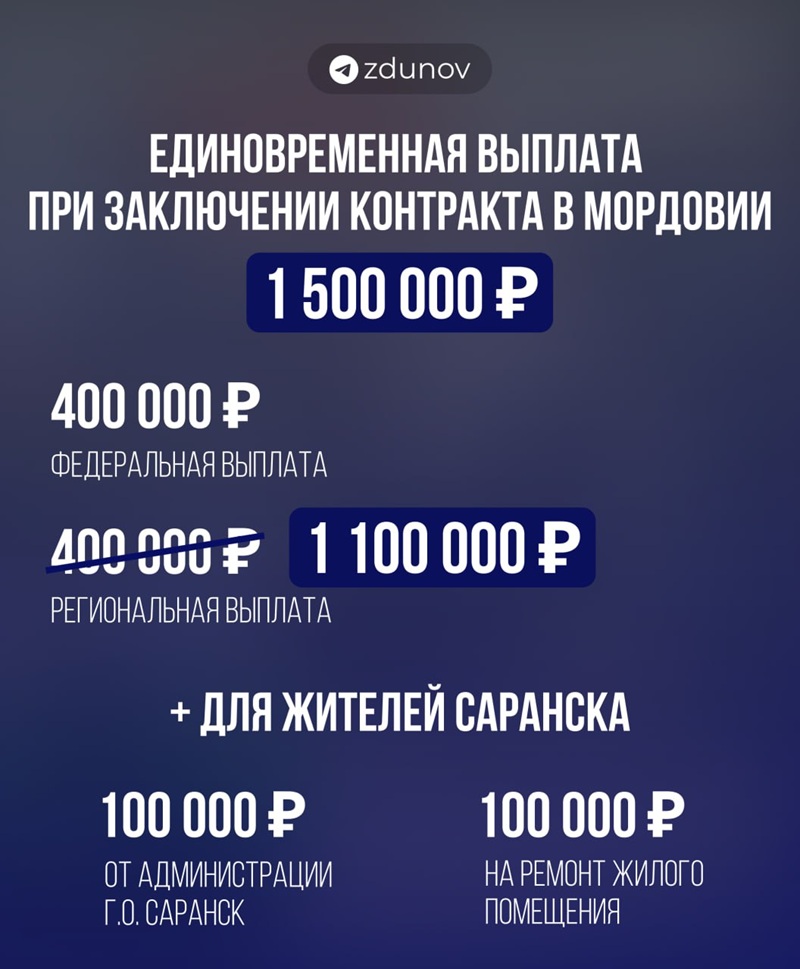 «Приняли решение увеличить размер региональной выплаты для наших защитников, которые заключат контракт с Минобороны до конца этого года - с 400 000 до 1 100 000 рублей.